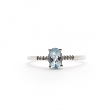 Elle est composée d'un anneau simple en or blanc 750/000 rehaussé d'un diamant aigue-marine.
