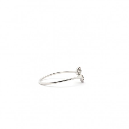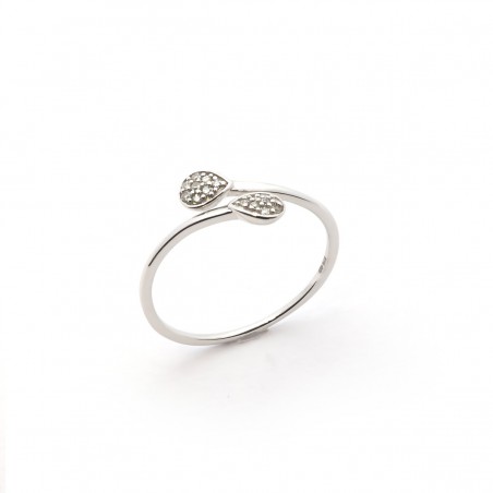 La bague ouverte est en or blanc 375/000 (9 carats) affichant deux pétales ornés de diamants.