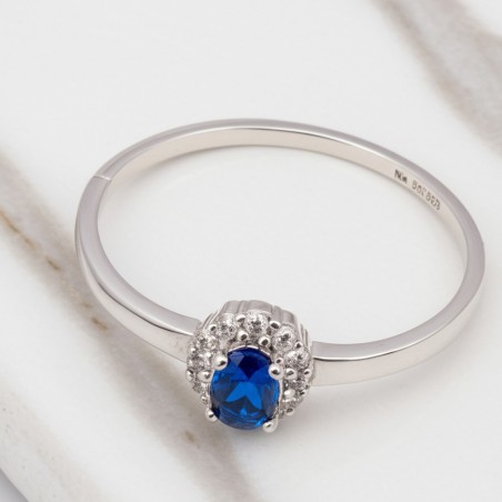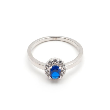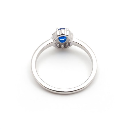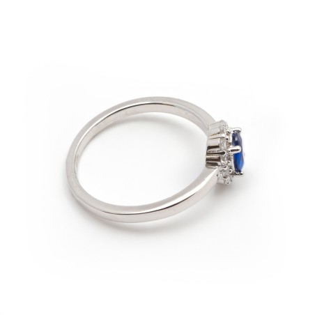 Bague Femme Carador Argent avec Spinelle bleu entouré d'Oxydes serti 4 griffes