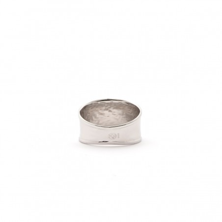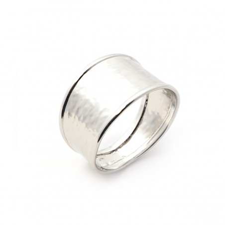 Cette anneau large et fin aux bords ourlés affiche une matière délicatement martelée pour vous offrir un bijou "brut" et tendance.