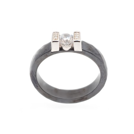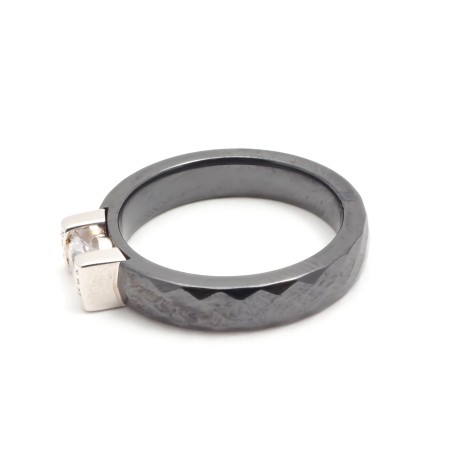Bague Femme Carador en Céramique noire facettée avec oxydes de zirconium
