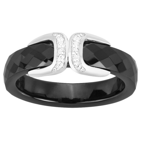 Bague Femme Carador en céramique noire facettée avec oxydes de zirconium