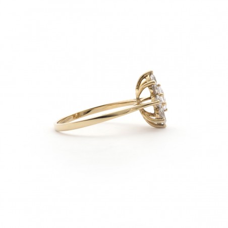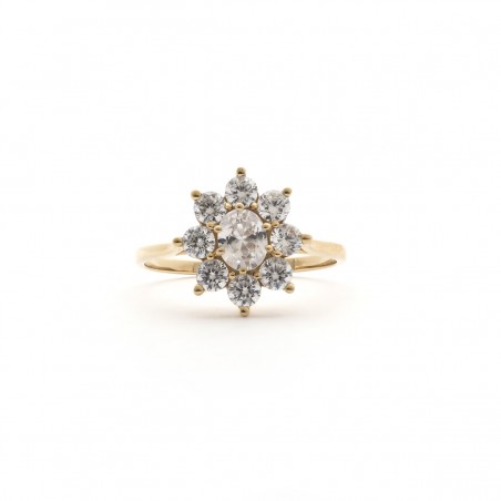La bague se compose d'un anneau simple en or jaune de 375/000 rehaussé d'oxydes de zirconium incolore.