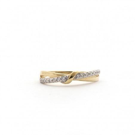 Cette bague se compose d'un anneau en or 375/000 sertis d'oxyde de zirconium incolore.