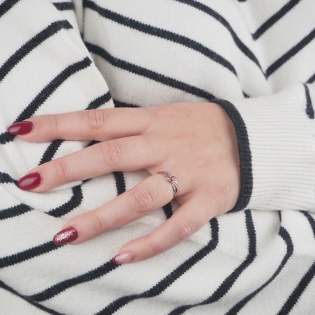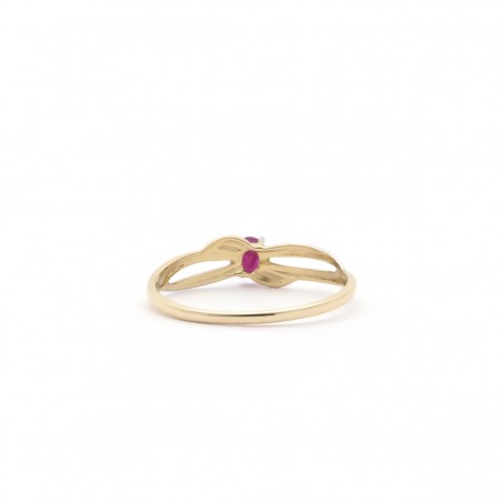 Elle se compose d'un anneau simple et fin en or 375/000 rehaussé d'un rubis en son centre.