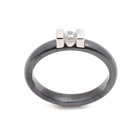 Bague Femme Carador solitaire céramique noire avec oxyde de zirconium