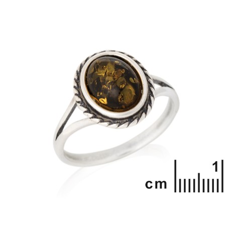 Bague Femme en Argent 925/000 avec Ambre verte ronde