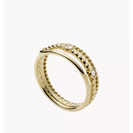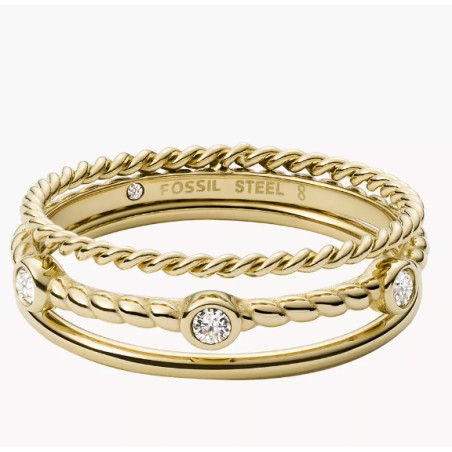 Bague Femme Fossil pré-stack Vintage Heritage en acier doré et oxyde de zirconium taille 56