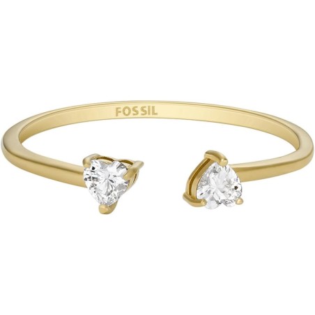 Bague Femme Fossil Sadie en acier doré et cristaux motif cœur taille 56