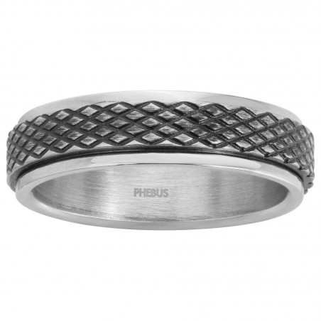 La bague est composée d'un anneau en acier argenté avec en son centre une bande de couleur noire.