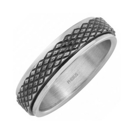 La bague est composée d'un anneau en acier argenté avec en son centre une bande de couleur noire.