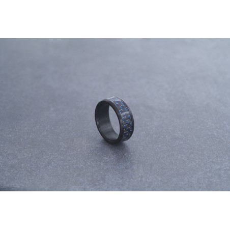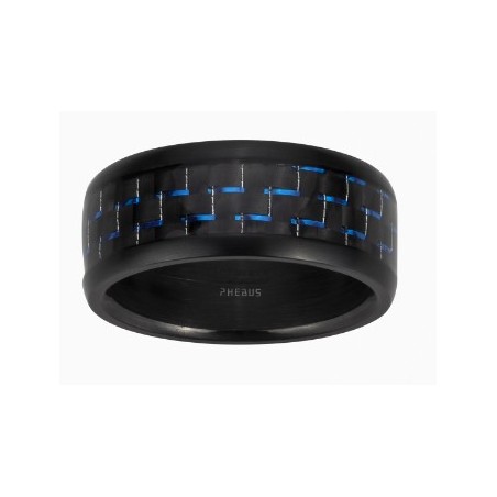 Bague Homme Phebus en Acier noir et Carbone bleu