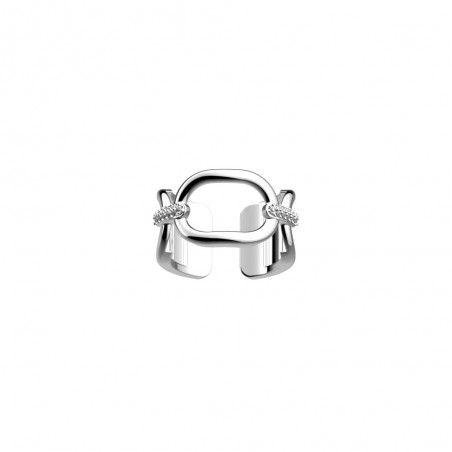 Ce modèle d’une largeur de 12mm affiche une finition couleur argent et un délicat motif maillon de chaîne serti par endroits d’oxydes de zirconium.
