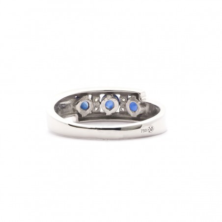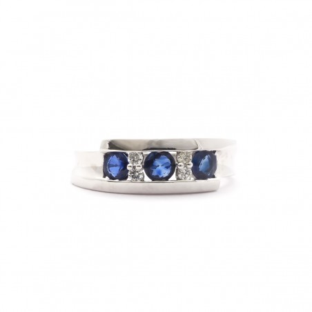 Révélant des lignes pures, cette bague met en valeur trois saphirs et quatre diamants.