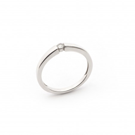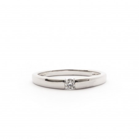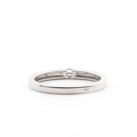 Votre bijouterie vous propose cette sublime bague en or 750/000. Faite d'un anneau en or blanc cette bague est surplombée par un diamants de 0.08 carats serti barretteCe bijou mettra votre main en valeur cela ne fait aucun doute.N'hésitez plus !