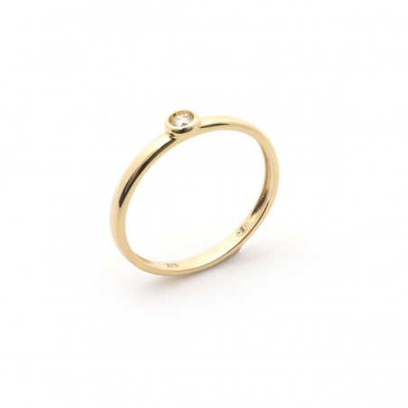 Un diamant serti clos orne un anneau aux lignes épurées.