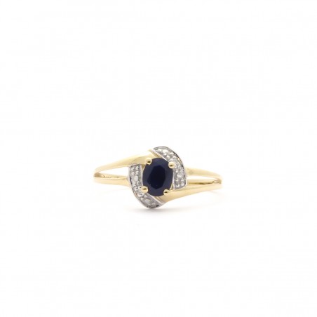 Elle se compose d'un anneau en or 375/000 rehaussé d'un saphir bleu au contour sertis de diamants.