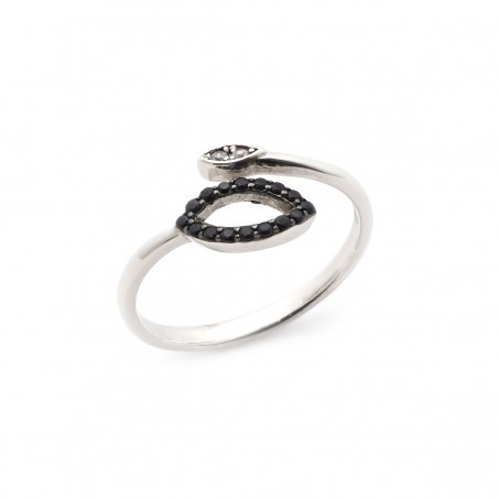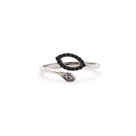 Avec cette bague ouverte, votre bijouterie Carador vous offre la possibilité d'habiller votre doigt d'un bijou délicat et scintillant. En argent 925/000, la bague révèle à ses extrémités deux ellipses ornées d'oxydes de zirconium blancs et noirs.