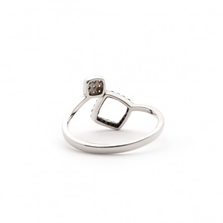 Sublimez votre doigt d'un bijou délicat et scintillant avec cette bague ouverte issue de la collection Carador. En argent 925/000, la bague révèle à ses extrémités deux losanges ornés d'oxydes de zirconium blancs et noirs.