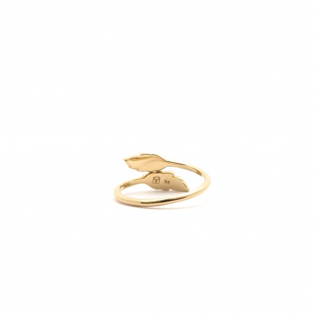 Ce modèle est en plaqué or ouverte affichant un délicat motif de plume.