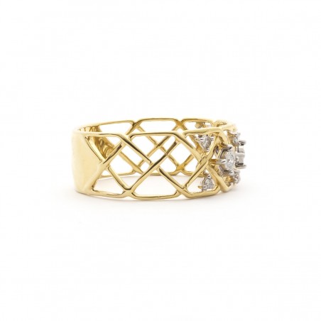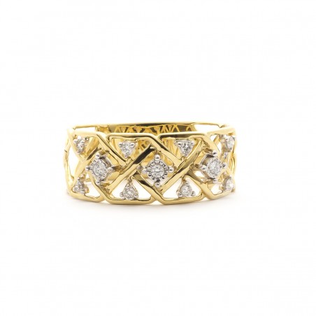 La bague Résille en or jaune 750/000, révèle un maillage délicat surmonté de diamants de 0,110 cts. Inspirant légéreté et élégance, cette bague Carador est le bijou qui sublimera votre main en toute occasion.