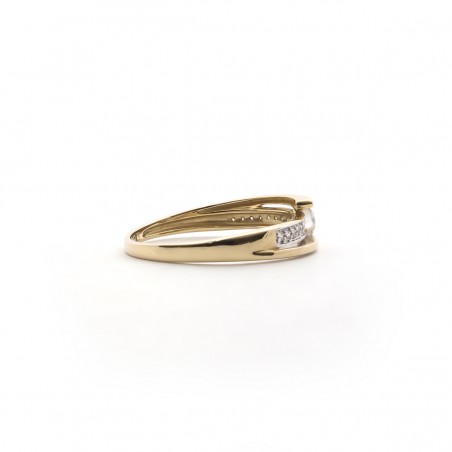 Cette bague est en or 375/000 de couleur jaune et blanc est ornée d'oxydes de zirconium.