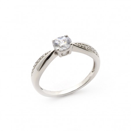Cette bague est en argent 925/000, elle se compose d'un solitaire accompagné d'oxydes de zirconium sur les côtés.