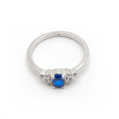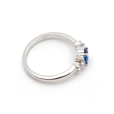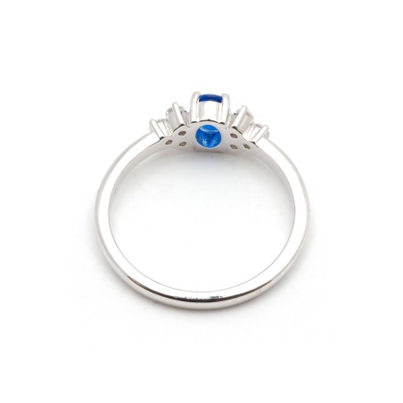 Bague solitaire accompagné femme carador en argent avec spinelle bleue foncée et oxydes de zirconium