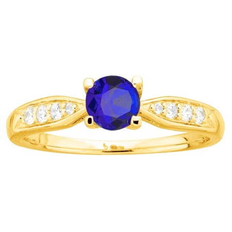 Bague solitaire accompagné femme carador en plaqué or avec oxydes de zirconium et spinelle bleu