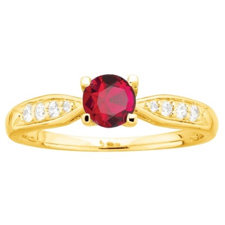 Bague solitaire accompagné femme carador en plaqué or avec oxydes de zirconium et spinelle rouge