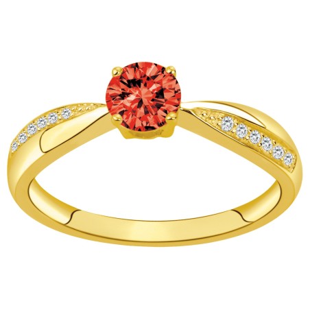 Bague solitaire accompagné femme carador en plaqué or avec oxydes de zirconium et spinelle rouge
