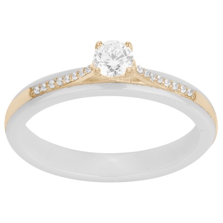 Bague solitaire accompagné femme carador en plaqué or et céramique blanche avec oxydes de zirconiums