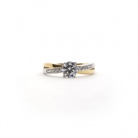 Elle se compose d'un anneau en or 375/000 bicolore sertis d'oxyde de zirconium.
