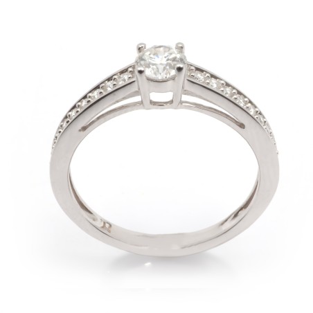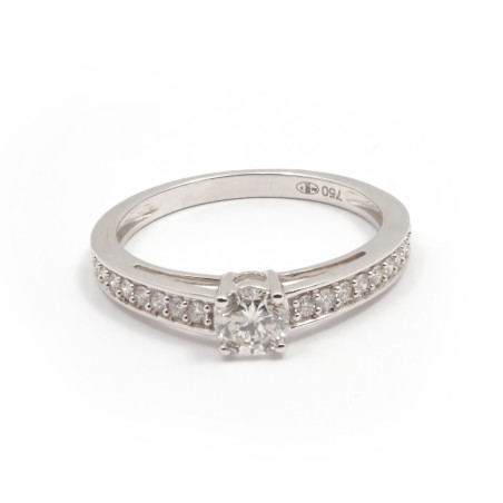 BAGUE SOLITAIRE ACCOMPAGNE OR BLANC 750/000 ET DIAMANTS