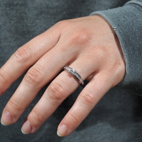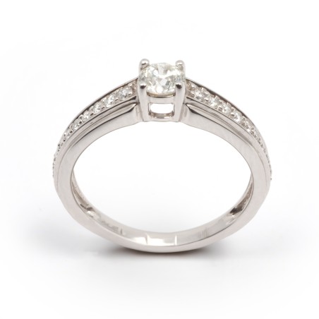 BAGUE SOLITAIRE ACCOMPAGNE OR BLANC 750/000 ET DIAMANTS
