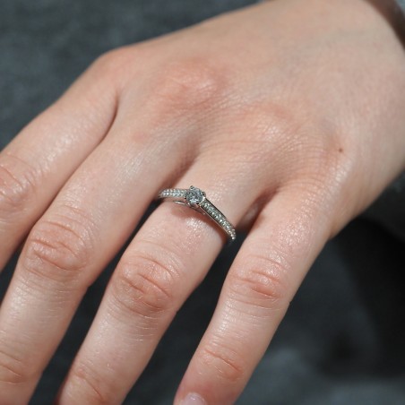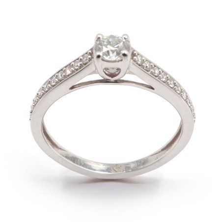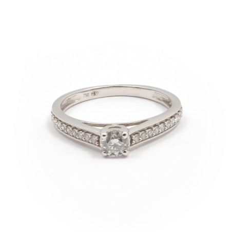 BAGUE SOLITAIRE ACCOMPAGNE OR BLANC 750/000 ET DIAMANTS