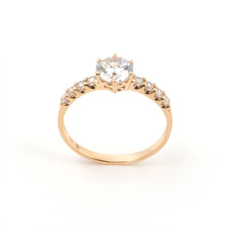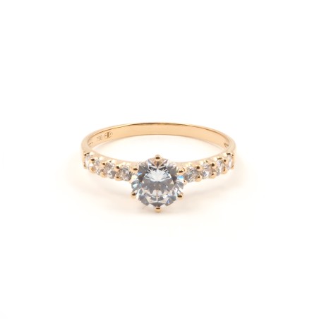 Bague solitaire accompagné or jaune 750/000 avec oxydes de zirconium