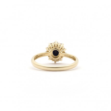 Ce modèle affiche un anneau fin et d'un motif en étoile au cœur de saphir et accompagné d'oxyde de zirconium.