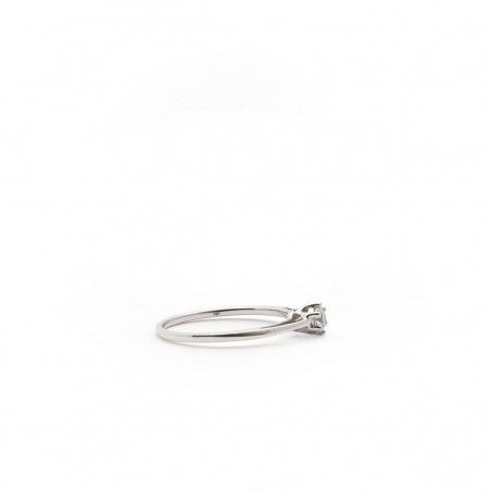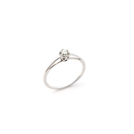Cette bague solitaire Carador est un bijou en or blanc 750/000. Son diamant de 0,18 cts est serti 6 griffes.