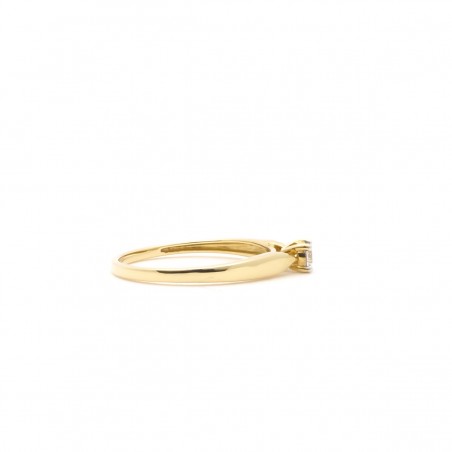 Cette bague en or jaune 375/000 est un solitaire, une bague traditionnellement offerte pour une demande en fiançailles. Mais elle peut aussi être offerte pour un événement particulier ou encore un anniversaire. C'est une bague précieuse qui traversera le temps. La mise à taille est gratuite chez Carador, renseignez-vous auprès du service client.