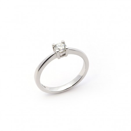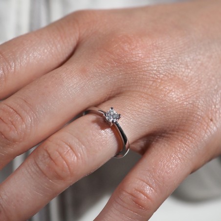 La bague solitaire Carador, présentée ici est en or blanc 750/000 et diamant de 0,31 cts.
