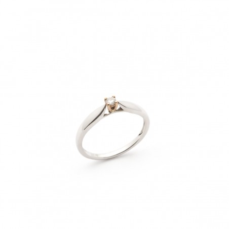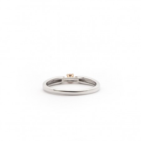 Ainsi vous est présenté ici un grand classique de nos boîtes à Bijou : cette sublime bague bicolore et solitaire de diamant qui saura se démarquer grâce à la présence d'or rose 375/000.