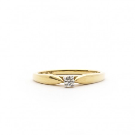 Le solitaire en or jaune et diamant est un classique de la bijouterie. Or jaune 750/000 et diamant 0,03 cts. Un bijou de qualité qui viendra délicatement entourer votre doigt. La mise à taille est gratuite chez Carador, renseignez-vous auprès du service client.