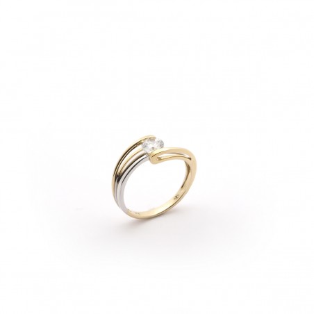 Elle est en or 375/000 bicolores serti d'un oxyde de zirconium incolore en son centre.