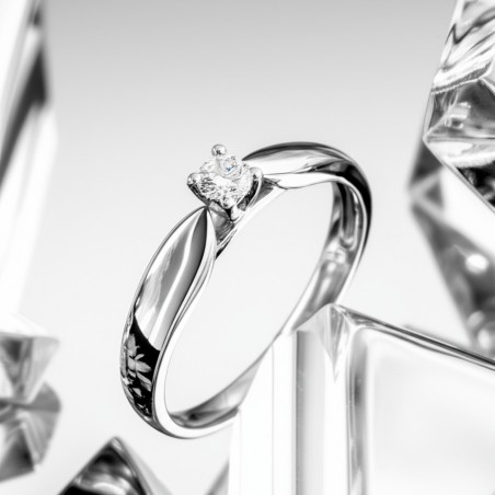 BAGUE SOLITAIRE OR BLANC 750/000 AVEC DIAMANT