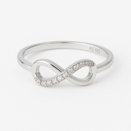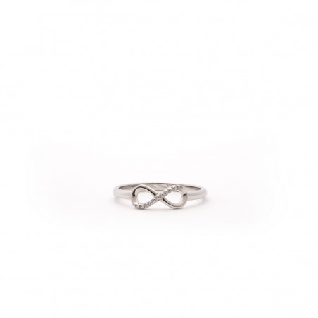 Carador, votre bijoutier, vous propose sa gamme de bijoux en argent.Cette magnifique bague possède comme motif le symbole de l'infini à demi incrusté oxydes de zirconium.Succombez au charme intemporel et éternel de ce bijou élégant et lumineux.