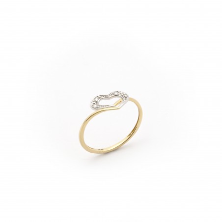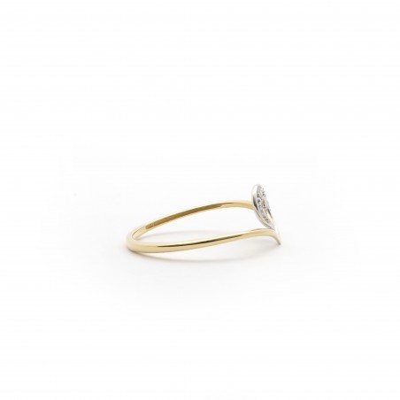 Cette bague est formée d'un corps délicat formant, sur la haut, un coeur orné de diamants