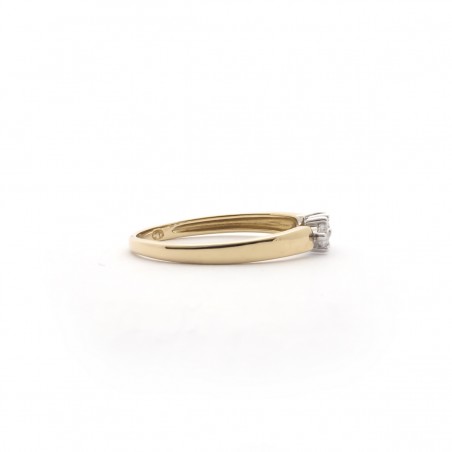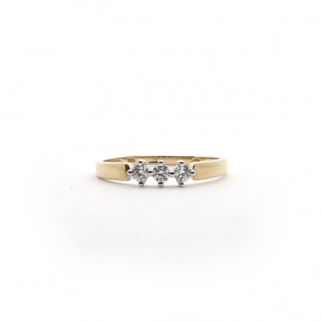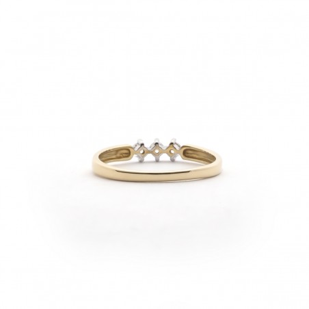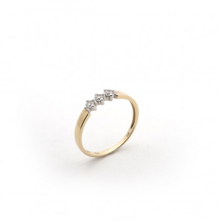 La bijouterie Carador vous propose cette bague au design épuré qui fera le bonheur de celles qui la porte à leur doigt. Ce bijou est en or jaune et blanc 375/000 et orné de trois oxydes de zirconium 0,36 cts. La mise à taille est gratuite, renseignez-vous auprès du service client.