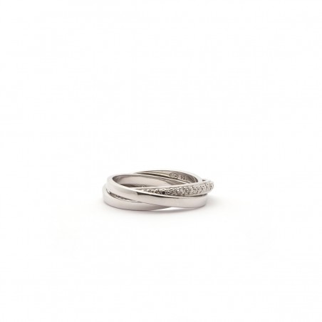 Votre Bijouterie Carador propose à sa clientèle une gamme de bijou en argent 925/000. Ici, elle vous propose cette bague triple anneaux. Un de ces trois anneaux est sertie d'oxydes de zirconium.