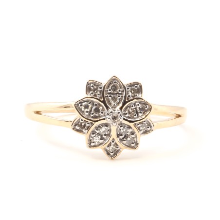 BAGUE CARADOR EN OR JAUNE 375/000 ET DIAMANTS MOTIF FLEUR